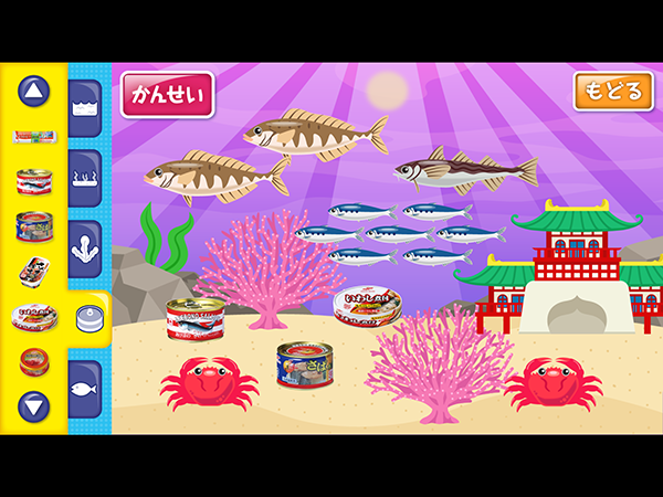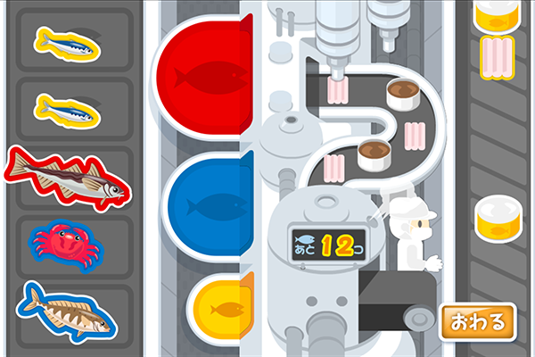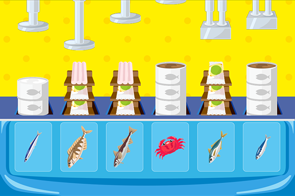 「ウミオスのおさかなで、なにつくる!?」は、缶詰や水産加工品を作るおしごとを体験できるコンテンツです。