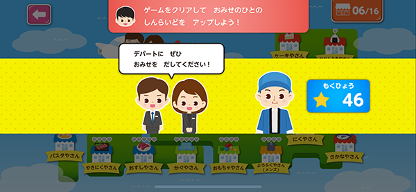 出店してもらうためには、ミニゲームをクリアして信頼度をあげる必要があります。