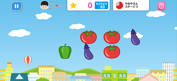 とんでくるアイテムをタップしてキャッチしていきます。