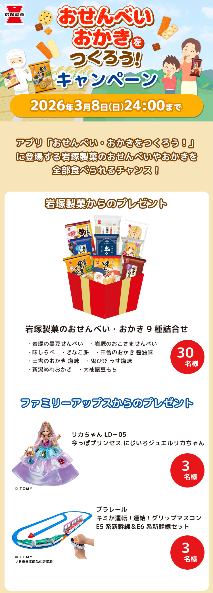 ※タカラトミーグループ及び岩塚製菓グループの社員及び関係者は応募できません。